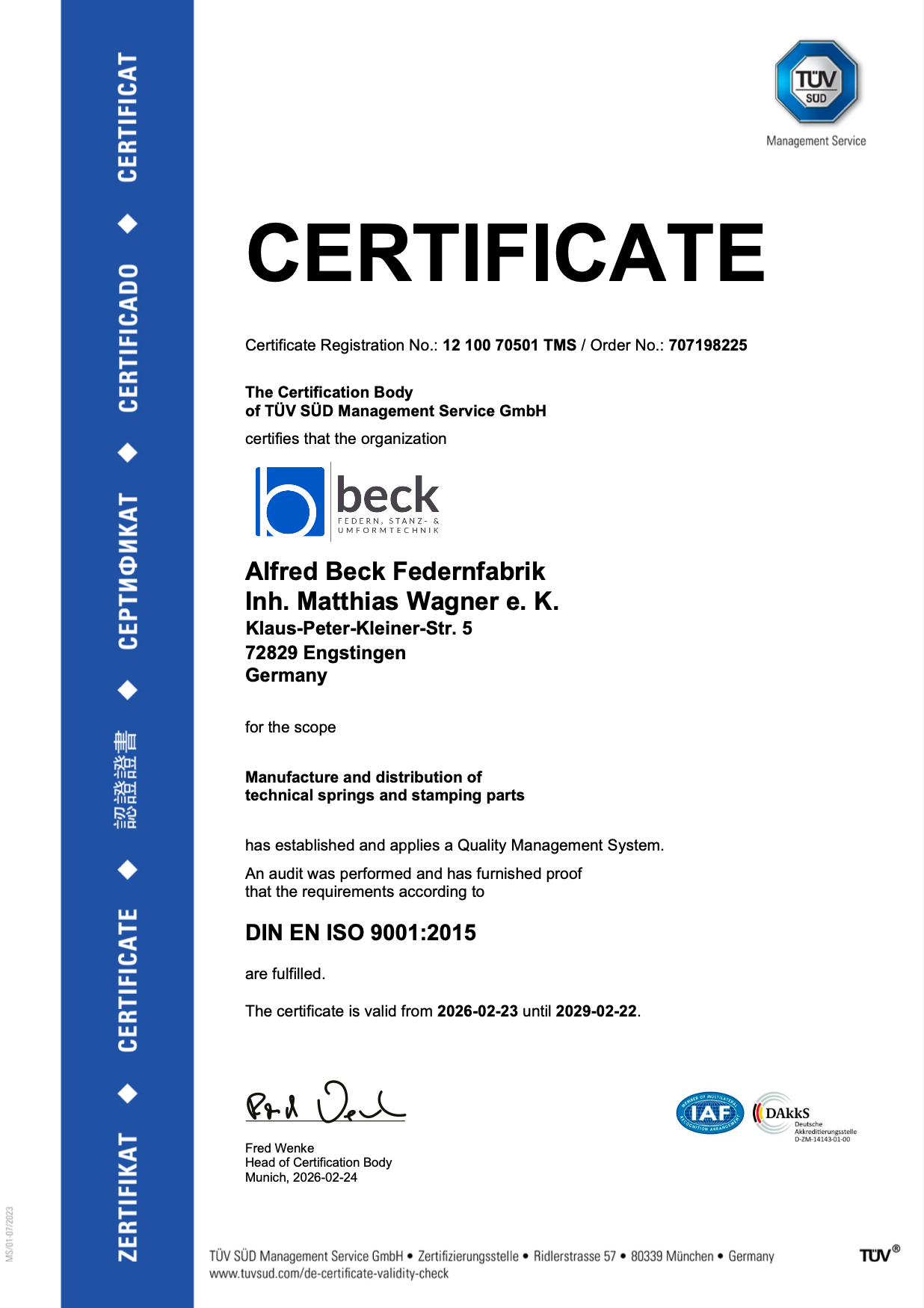 ALFRED BECK FEDERNFABRIK . 07129 / 930088 . wagner@beck-federn.de